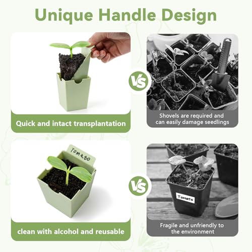 NO MORE MESSY TRANSPLANTS: Each cell features a dual-purpose handle that makes lifting and transplanting seedlings a breeze. The handles also serve as erasable plant labels—just write with a marker and wipe clean with alcohol. This innovative design reduces transplant shock and increases seedling survival rates