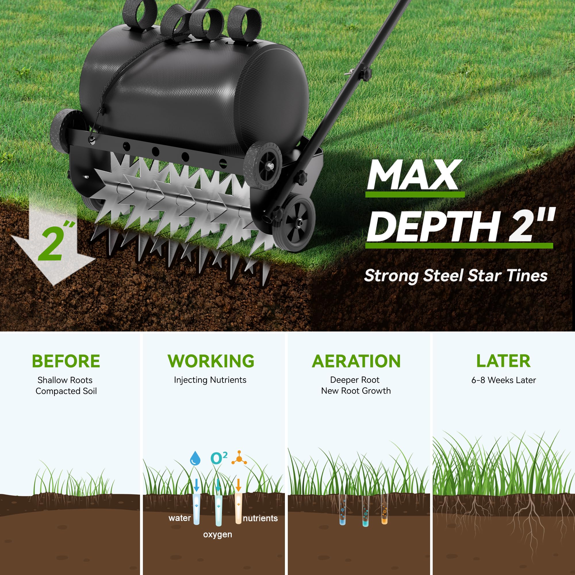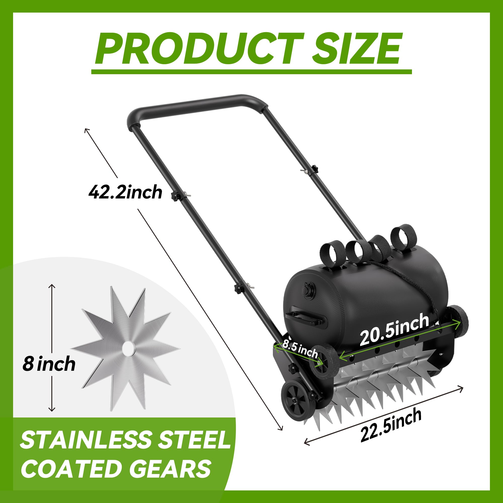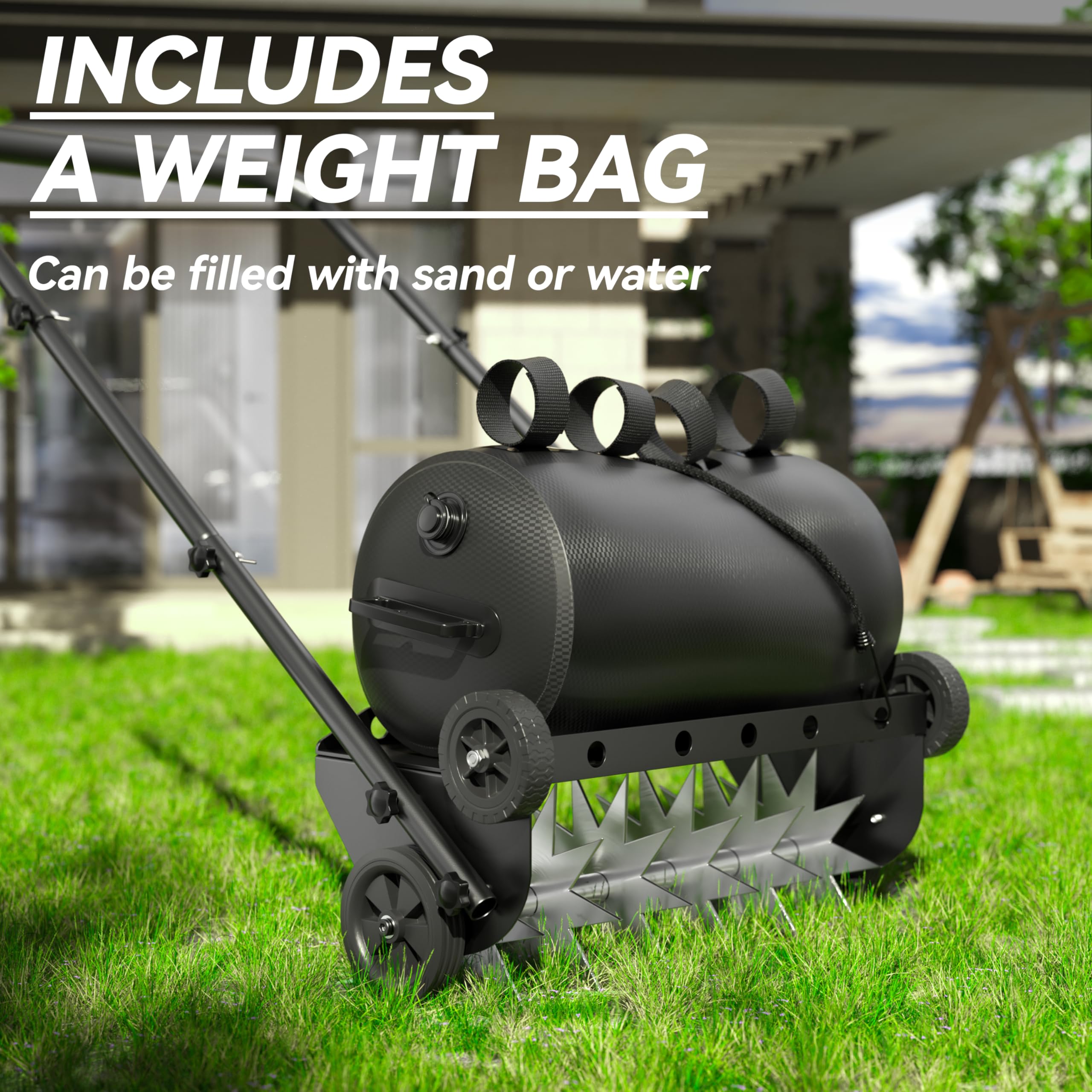 22.5-Inch Lawn Aerator with Weight Bag Heavy Duty Push Spike Aerator with 4 Wheels