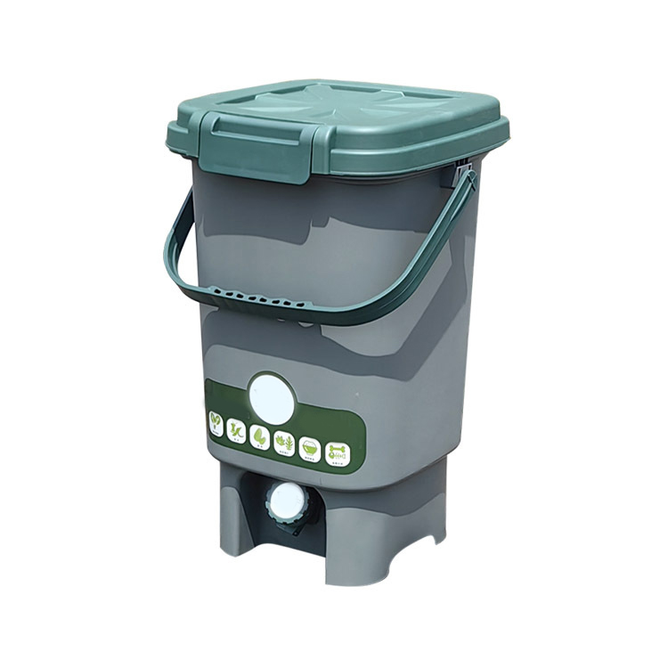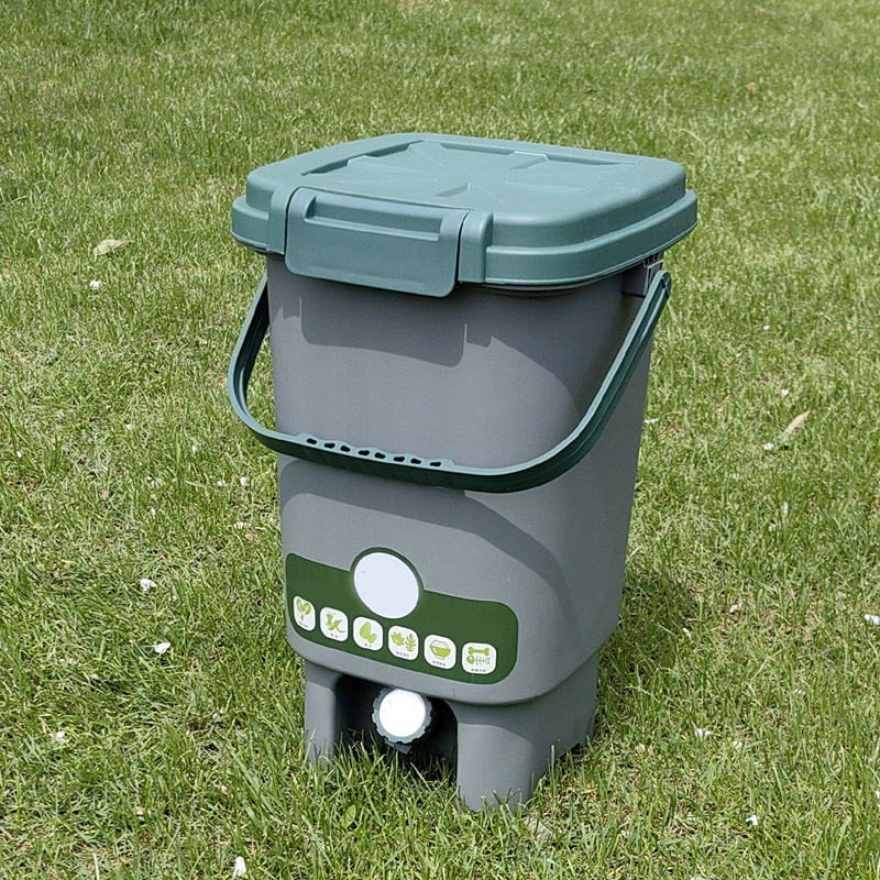 Probiotics Indoor Composter Starter Kit – Compost right in your kitchen with this ready-to-use kit. 5-gallon countertop compost bin with strainer & spigot. BPA free plastic bin is tan with green lid & handle. 1 gallon (2 lbs.) of compost starter included.