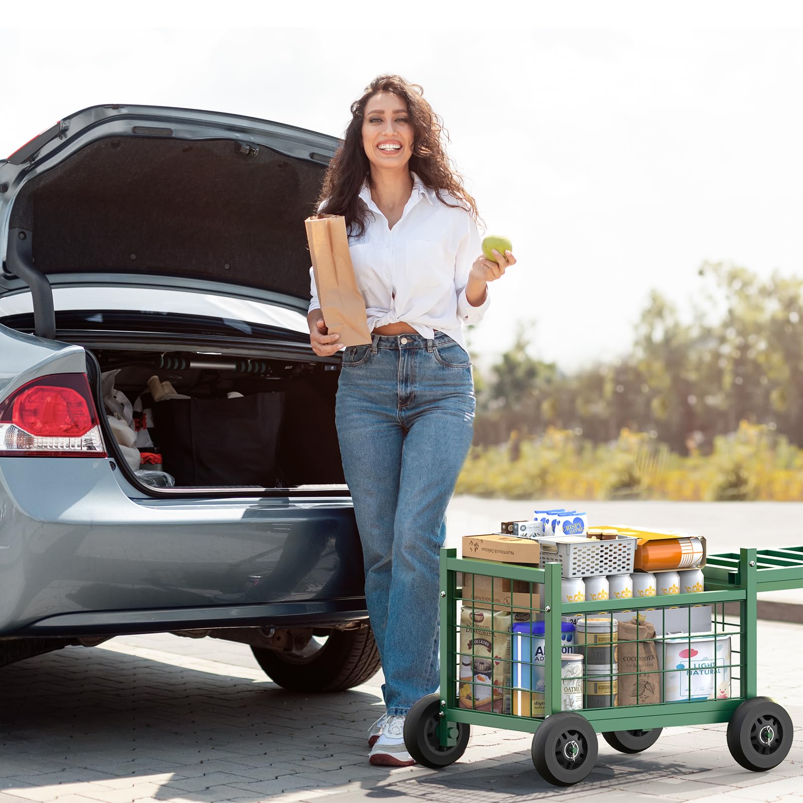 Easily transports with wheels: The multi-use garden wagon features sturdy rubber tiers that are 4.7” in diameter, and its built-in handle enables you to travel through various terrain effortlessly. Its easy maneuverability is great for both kids and seniors